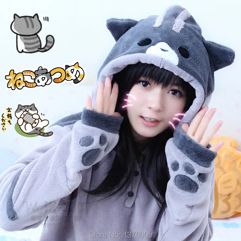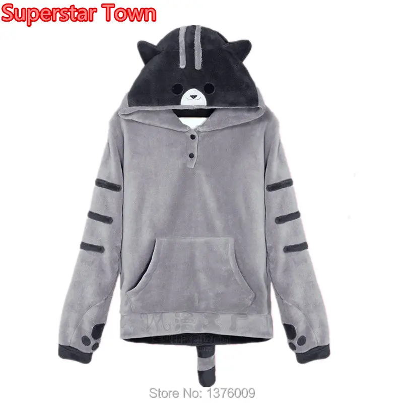 Japan Game Neko Atsume Hoodies Kawaii Cat Meow With Ears & Tail Hoodie Lolita Women Flannel Soft Ho