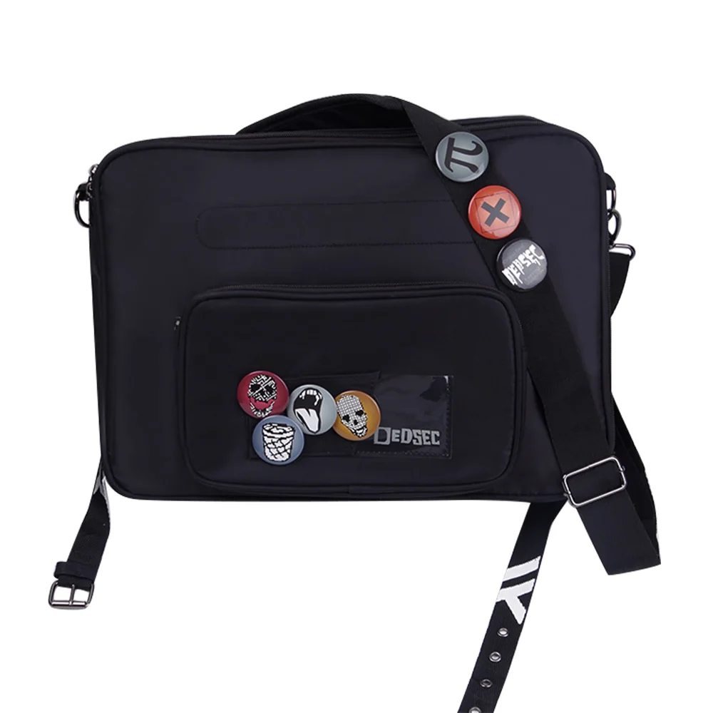 Game Watch Dogs 2 Marcus Holloway Cosplay Bag Men Women Black Satchel with Badge Adults Carnival Pa